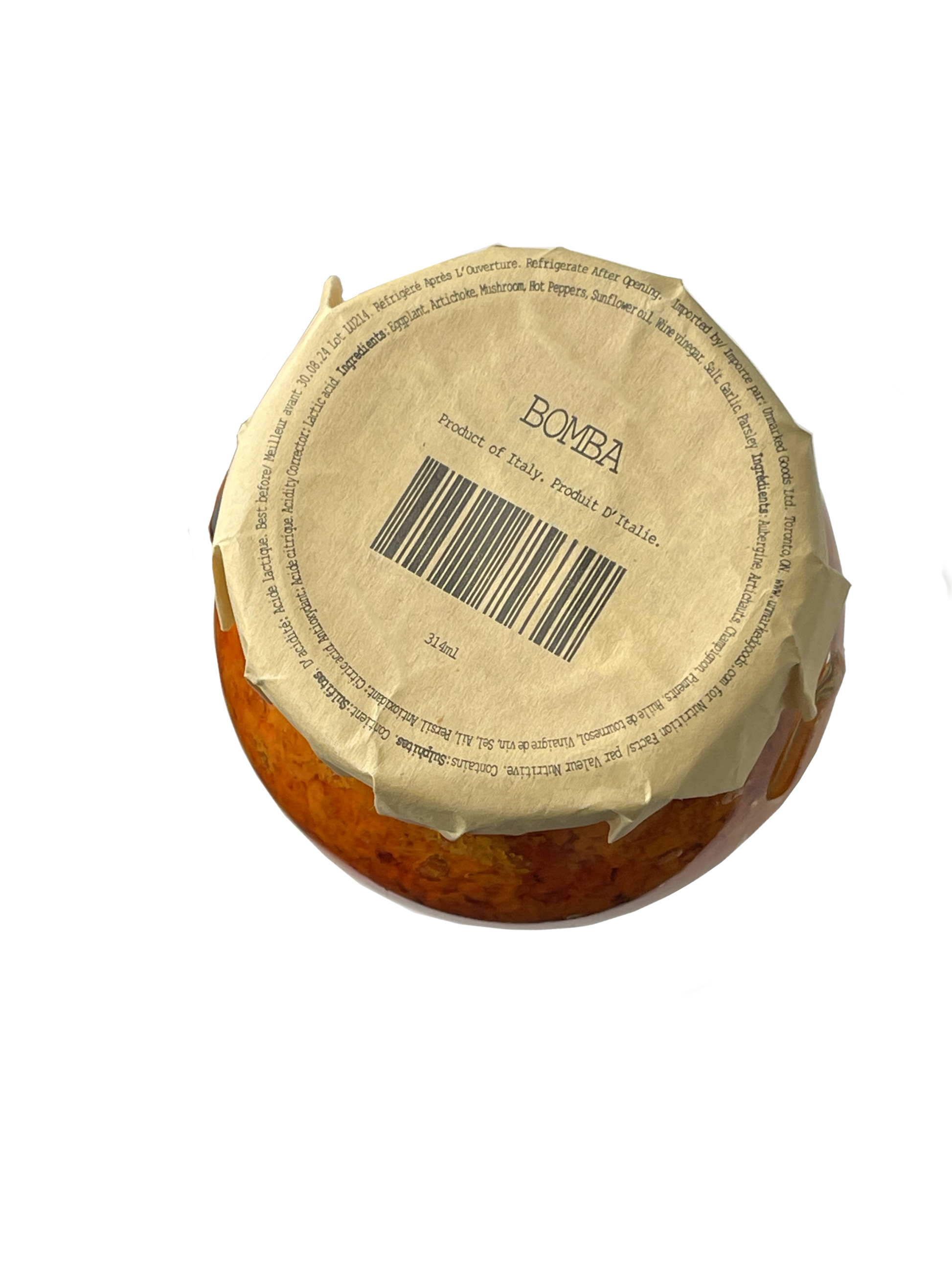 Delicious on its own or a sauce or dip, our spicy red pepper BOMBA is the perfect way to spice up your favourite recipe or pasta dish. Made from a traditional recipe with blended red peppers, eggplants, sunflower oil and spices.